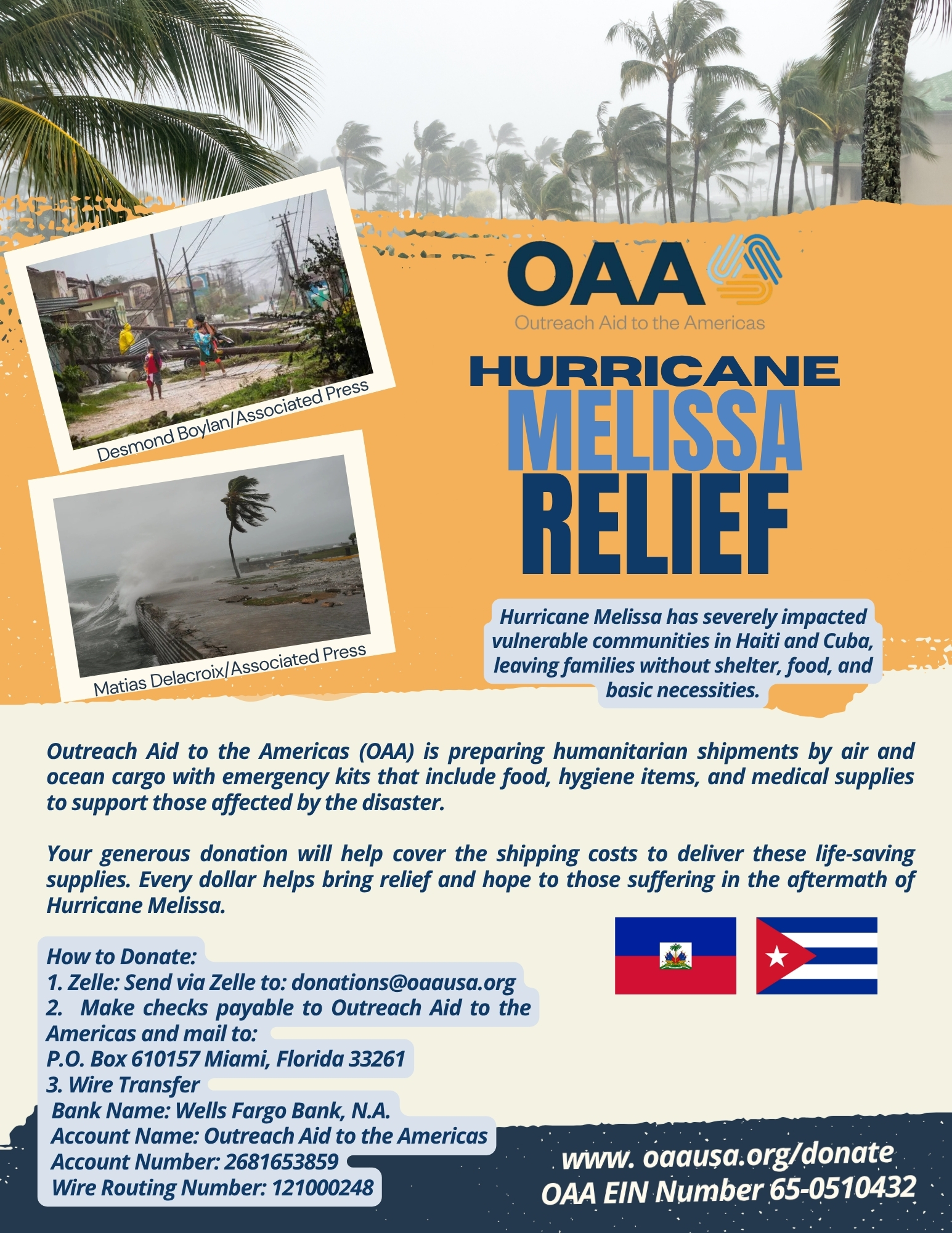 Our focus will be on sending containers of humanitarian assistance and hygiene kits to Cuba, along with hygiene products to Haiti. OAA is partnering with local vetted faith partners evangelical and Catholic to conduct the distribution. Our main concern is to facilitate disaster relief operations to rapidly reduce the suffering of the victims so to that degree we are strategically guiding our Cuban partners to organize distribution and obtain the necessary permits from the government so we can send them the needed supplied.